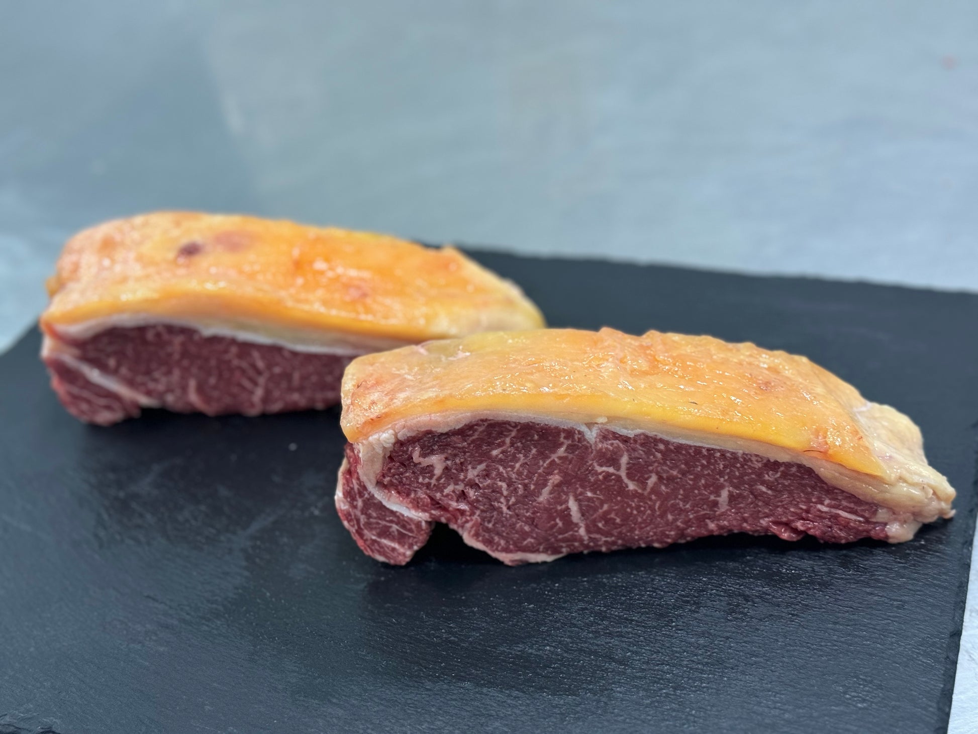 De nuestra exclusiva selección Platinum, presentamos estos excepcionales entrecots de lomo bajo de vaca, cuidadosamente elegidos por su calidad superior y su distintiva grasa infiltrada. Esta infiltración de grasa, característica de nuestra selección Platinum, aporta un sabor exquisito y una ternura inigualable, haciendo de cada bocado una experiencia memorable.